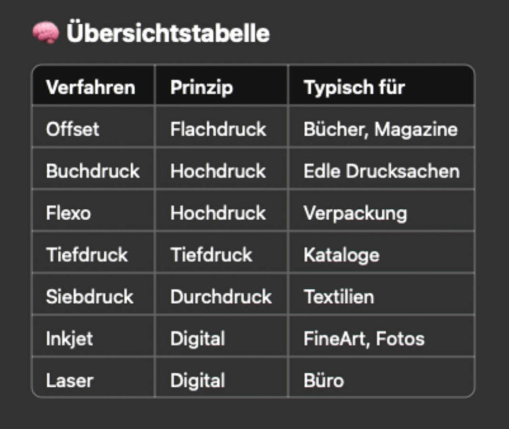 Fast alle Druckverfahren gehören zu einer dieser Gruppen bzw. arbeiten nach einem der folgenden Prinzipien